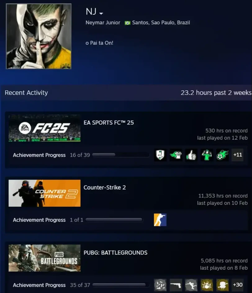 To jednak nie wszystko - z tego samego zrzutu ekranu wynika, że Neymarowi nie jest również obcy świat gier battle royale. Dość powiedzieć, że ponad 5 tys. godzin przegrał w słynnym PUBG: Battlegrounds. A jeśli chodzi o piłkarskie pozycje? EA Sports FC 25 zatrzymało go na... 530 godzin.