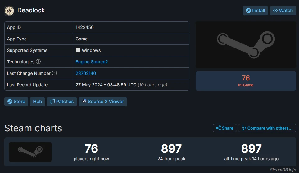 W zakładce gry Deadlock możemy wyczytać, że od 25 maja strzelanka ta posiada spore grono zalogowanych graczy. Sam twórca portalu SteamDB poinformował na swoim profilu na X, iż są to osoby uczestniczące w zamkniętych testach gry.