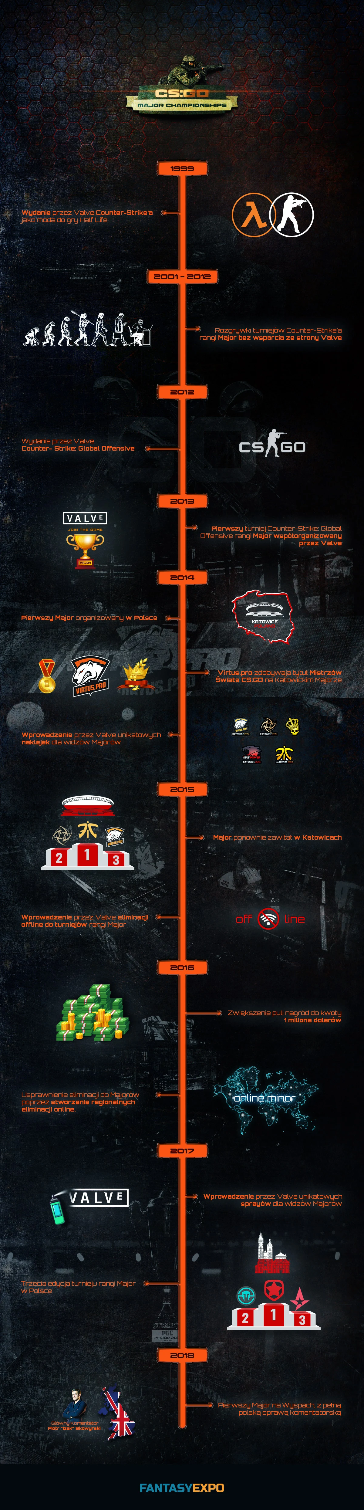 Na samym początku wyjaśnijmy jedną podstawową kwestię: czym turnieje rangi Major różnią się od innych zawodów esportowych? Counter-Strike: Global Offensive Major Championships (potocznie zwane "Majorami") to rozgrywki z pulą nagród w wysokości 1 miliona dolarów (przed rokiem 2016 z pulą nagród wysokości 250 tysięcy dolarów) od roku 2013 sponsorowane przez firmę Valve będącą deweloperem Counter-Strike. Warto dodatkowo wyjaśnić, iż poprzednie wersje CS'a również posiadły turnieje, sygnowane nazwą Major, lecz dopiero Global Offensive zostało oficjalnie wsparte przez swoich twórców.