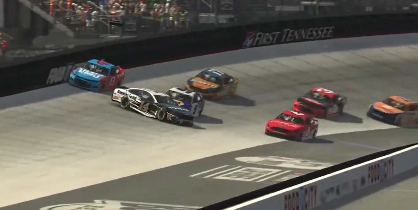 Zdarzają się jednak pewne problemy. Świetnym przykładem był niedzielny Food City Showdown na torze Bristol Motor Speedway. Całość oczywiście w sieci, w iRacing. Zmagania transmitowała telewizja Fox. Na 11 okrążeniu doszło do kolizji z udziałem Bubby Wallace’a i Clinta Bowyera.