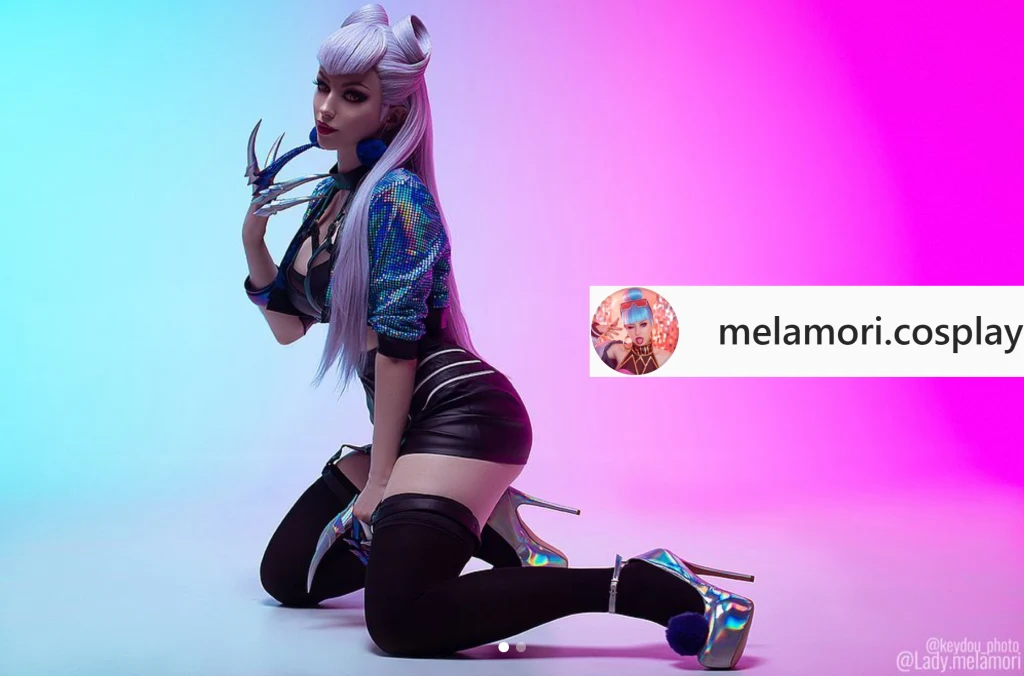 Jedną z bardziej rozchwytywanych bohaterek jest Evelynn i to właśnie jej cosplay będzie omawiany. Za produkcję stroju odpowiada sama "Melamori". Trzeba przyznać, że cała operacja "ożywienia" została wykonana perfekcyjnie. Artystka ułożyła doskonale długie fioletowe włosy Evelynn, z odpowiednią ilością makijażu na twarzy, co sprawiło upodobnienie.