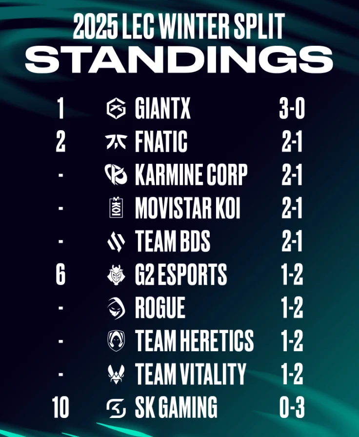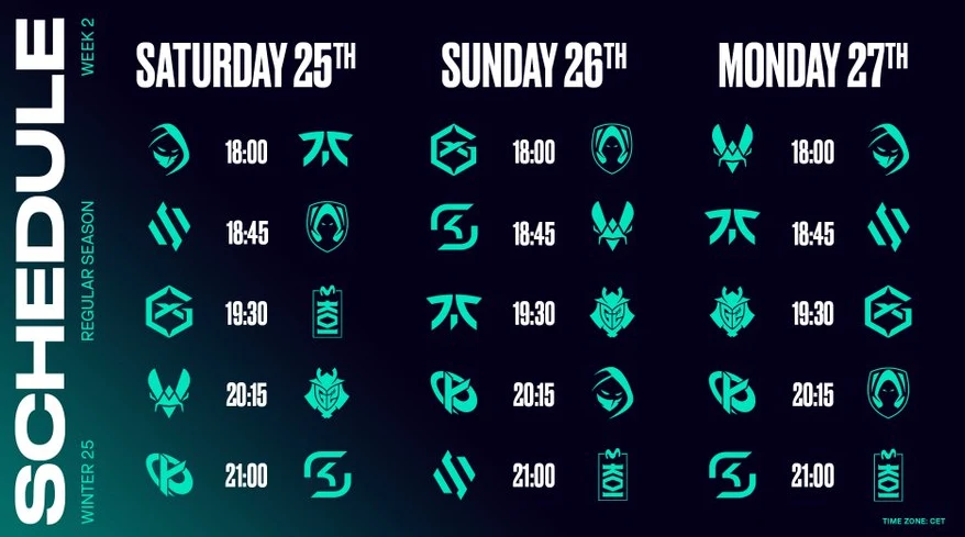 Drugi tydzień to więc przede wszystkim sprawdzian dla tych, którzy zaskoczyli nas najbardziej. Czy G2 Esports wróci do swojej standardowej formy i zaliczy bezbłędny tydzień? Czy GIANTX będzie kontynuować swoją świetną passę i pozostanie niepokonane? Czy któraś z drużyn z dolnej części tabeli zaatakuje czołowe miejsca i z powrotem wzbudzi w nas nadzieje w ich zimowej formie?