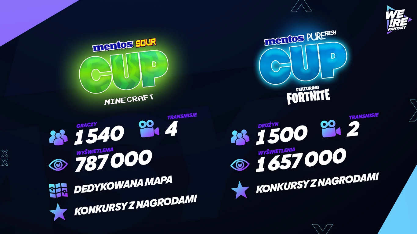 W odpowiedzi na potrzeby marki Mentos, agencja WE!RE Fantasy, wspólnie z Gam3rs_x przygotowały dwa turnieje dla społeczności gier Minecraft oraz Fortnite. Wybór tytułów nie był przypadkowy - obie gry cieszą się niesłabnąca od lat popularnością i zrzeszając wokół siebie społeczność korespondującą z TG, do której marka Mentos chciała dotrzeć.