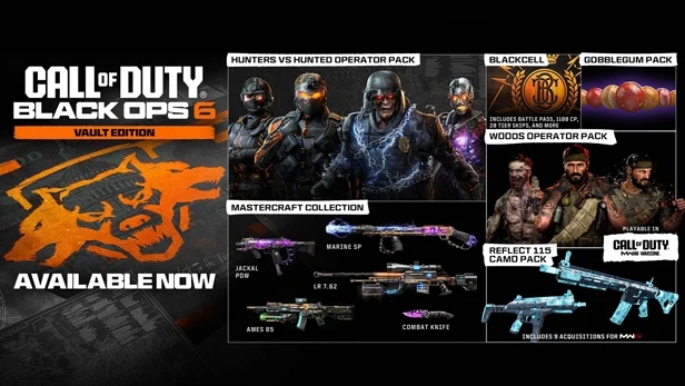 Call of Duty: Black Ops 6 można kupić w dwóch wersjach - standardowej lub Vault. Wersja standardowa zawiera podstawową edycję gry, a wersja Vault wzbogacona jest o dodatkowe atrakcje, których pełną listę zobaczycie na powyższej grafice.