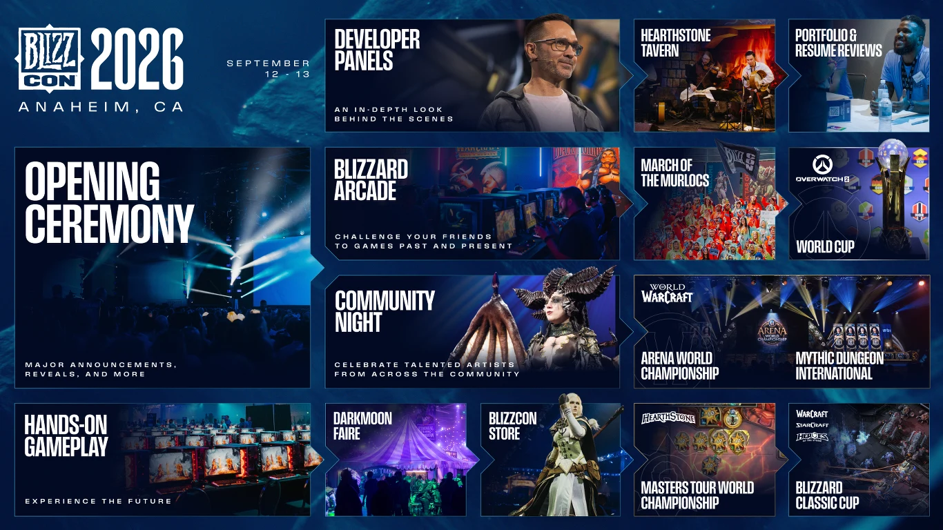Blizzard ujawnił również pierwsze informacje na temat atrakcji. Uczestnicy mogą spodziewać się klasycznych elementów BlizzConu, w tym ceremonii otwarcia, praktycznej rozgrywki, paneli z udziałem twórców, wieczoru społeczności, szeregu turniejów e-sportowych, a także powrotu Wieczoru charytatywnego BlizzCon oraz Festynu Lunomroku. Dodatkowe informacje są dostępne na blogu.