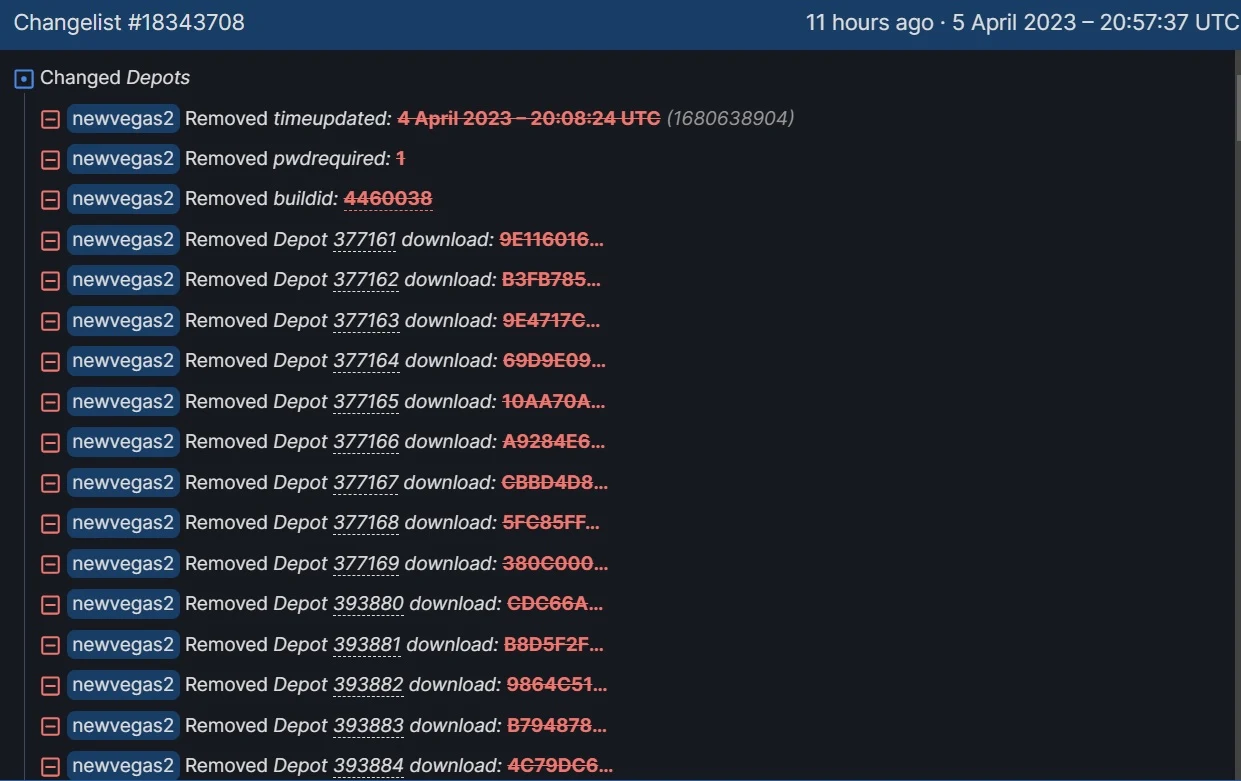 Dzień później wszelkie wzmianki o New Vegas 2 zniknęły, ale chwilę przed tym uwiecznić ten moment udało się SteamDB. Ktoś w Bethesdzie lub Steamie szybko przejął się jednak drobnym wyciekiem i postanowił szybko pozbyć się sugestii, że Bethesda może szykować jakąś niespodziankę dla fanów Fallouta.
