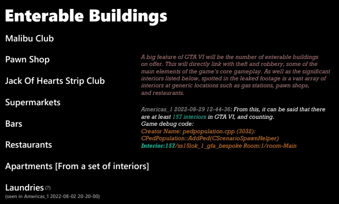 Szczególnie jedna informacja tam zawarta rozpala entuzjazm fanów Grand Theft Auto. Najprawdopodobniej Rockstar Games chce stworzyć grę, która pozwoli na eksplorację ogromnej liczby budynków i lokali. Ma być to silnie powiązane z pobocznymi i głównymi aktywnościami związanymi z organizowaniem napadów i kradzieży.