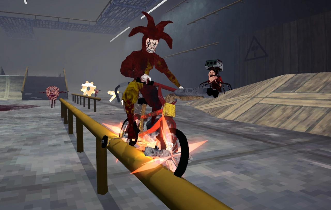 - Przejedź pit bike’iem napędzanym piłą łańcuchową przez arenę wypełnioną potworami! Wykonuj karkołomne triki, takie jak salta, chwyty, grindy i manuale, i łącz je w najbardziej chore kombinacje, jakie kiedykolwiek widziało podziemie. Gra ta powinna wyglądać bardzo znajomo każdemu, kto kiedykolwiek grał w którąkolwiek z gier Tony Hawk’s Pro Skater. Znajdź swój własny styl i wykonuj triki jakie tylko chcesz.
