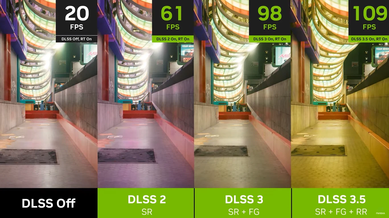 NVIDIA potwierdziła także, iż DLSS 3.5 zadebiutuje oficjalnie jeszcze tą jesienią. Pierwsze tytuły gamingowe, do jakich trafi nowa technologia to: Alan Wake 2, Cyberpunk 2077: Phantom Liberty oraz Portal RTX. Ciekawostką jest fakt, że technika zaoferuje pełną integrację z platformami: NVIDIA Omniverse, Renderer D5 oraz Chaos Vantage.