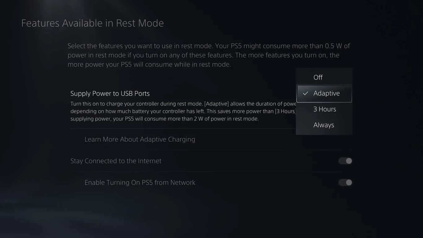 Funkcja, która zadebiutuje tylko na konsoli PlayStation 5 Slim. Opcja ta pozwoli zaoszczędzić energię. Ładowanie kontrolera DualSense dostosować można w zależności od poziomu naładowania urządzenia. Konfiguracja tej opcji dostępna jest w ustawieniach systemowych w zakładce oszczędzania energii.