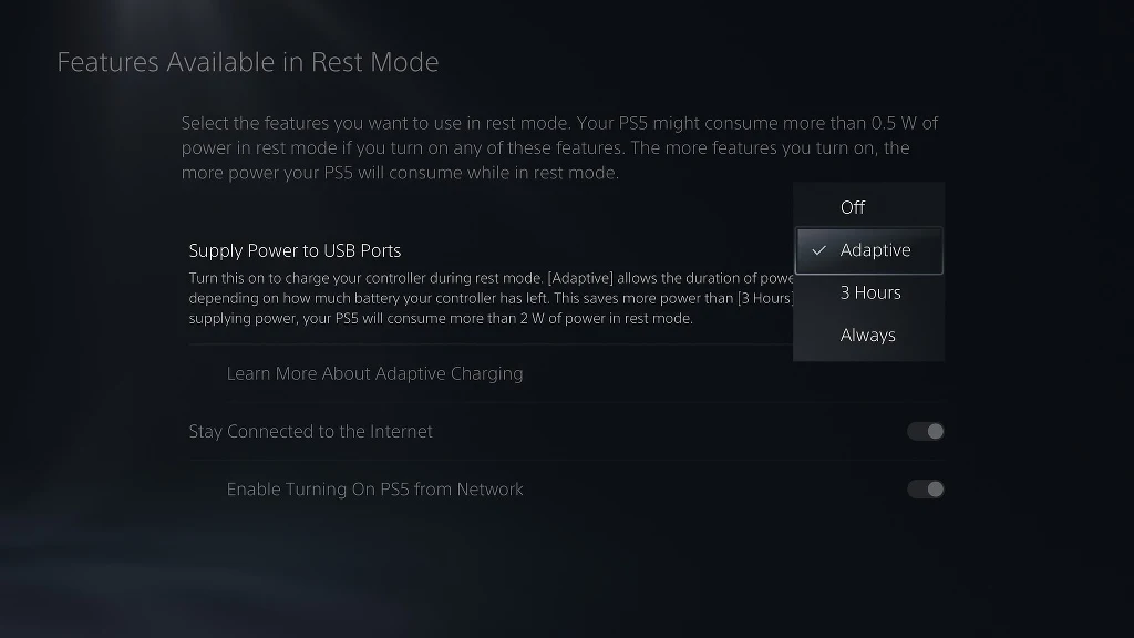 Funkcja, która zadebiutuje tylko na konsoli PlayStation 5 Slim. Opcja ta pozwoli zaoszczędzić energię. Ładowanie kontrolera DualSense dostosować można w zależności od poziomu naładowania urządzenia. Konfiguracja tej opcji dostępna jest w ustawieniach systemowych w zakładce oszczędzania energii.