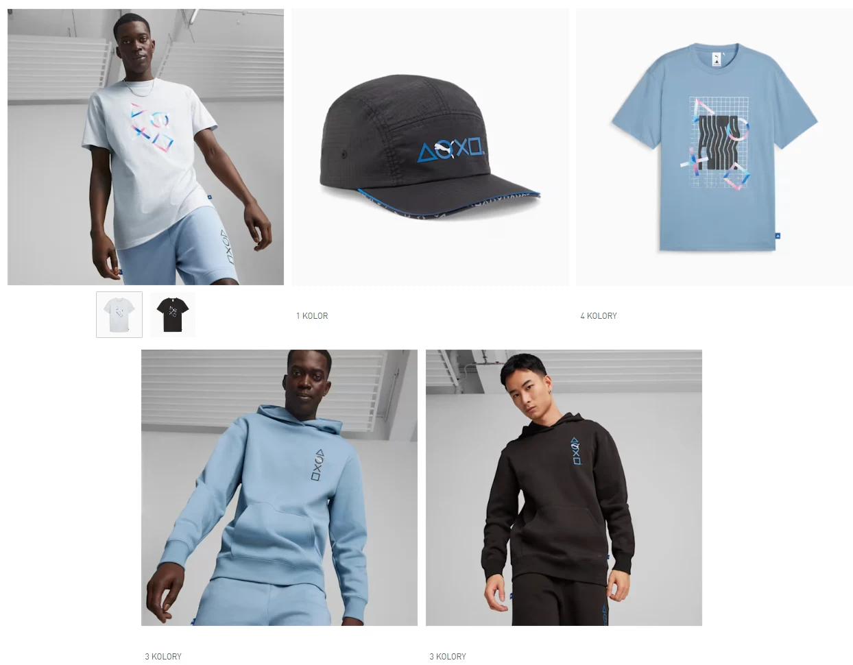 W kolekcji PUMA x PlayStation dostępne są specjalne koszulki sygnowane logotypami tych dwóch firm. Dostępne są one w cenach 199 / 219 zł w normalnej wersji, natomiast młodzieżowe warianty wycenione zostały na 119 / 149 zł zależnie od kroju i grafik.