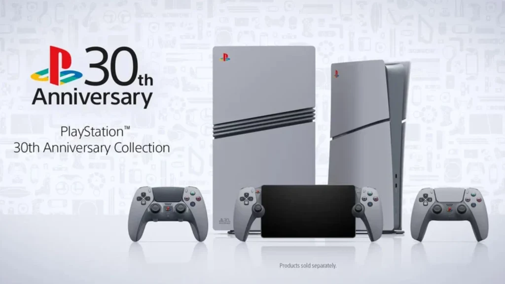 30. rocznica marki PlayStation to doskonała okazja do świętowania. Sony z tego tytułu postanowiło wydać na rynek limitowane wersje konsoli PS 5 mocno nawiązujące stylistyką do oryginalnego PlayStation. Ponadto japoński gigant zaprezentował również edycje PS5 Pro 30th Anniversary Limited Edition Bundle z zestawem akcesoriów i dodatkami kolekcjonerskimi oraz limitowane kontrolery DualSense Edge Wireless i DualSesne Wireless Controller.