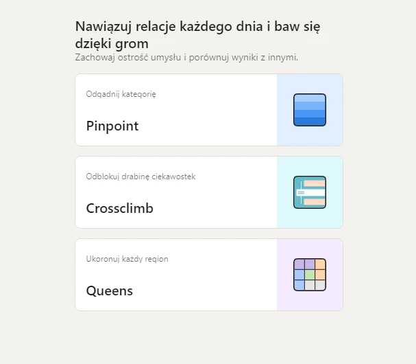 W serwisie pojawiły się dokładnie trzy mini-gry o charakterze słowno-logicznym. Poniżej prezentujemy ich krótką charakterystykę: