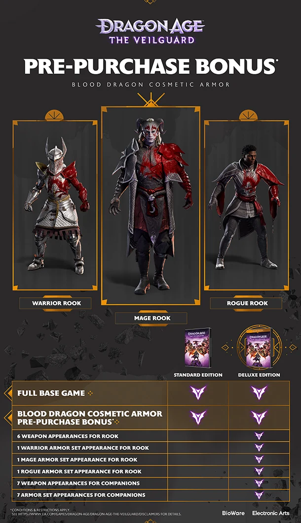 Tutaj zobaczycie z kolei wszystkie atrakcje do zdobycia poprzez zakup Dragon Age: The Veilguard w przedsprzedaży.