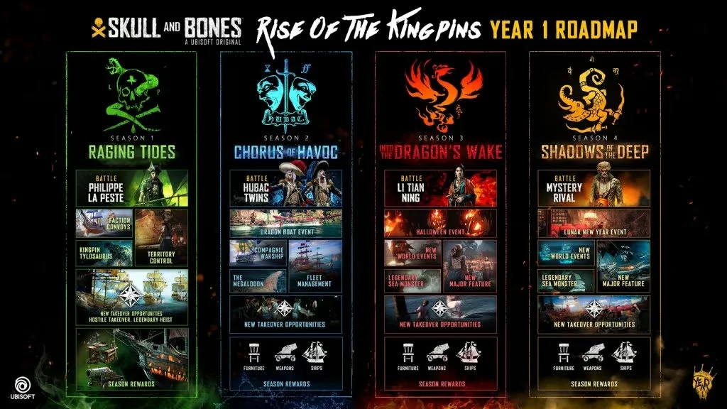 Podobnie jak kilka ostatnich premier Ubisoftu, Skull and Bones będzie grą live-service. Wydawca zapowiedział już swoje plany rozwoju tego tytułu w kolejnych miesiącach. Fani The Division 2 czy nawet Rainbow Six Siege powinni dobrze kojarzyć ten system. Ubisoft planuje wprowadzać do Skull and Bones nową zawartość, oferować graczom wydarzenia ograniczone czasowo, a wszystkie aktualizacje mają być dostępne za darmo.