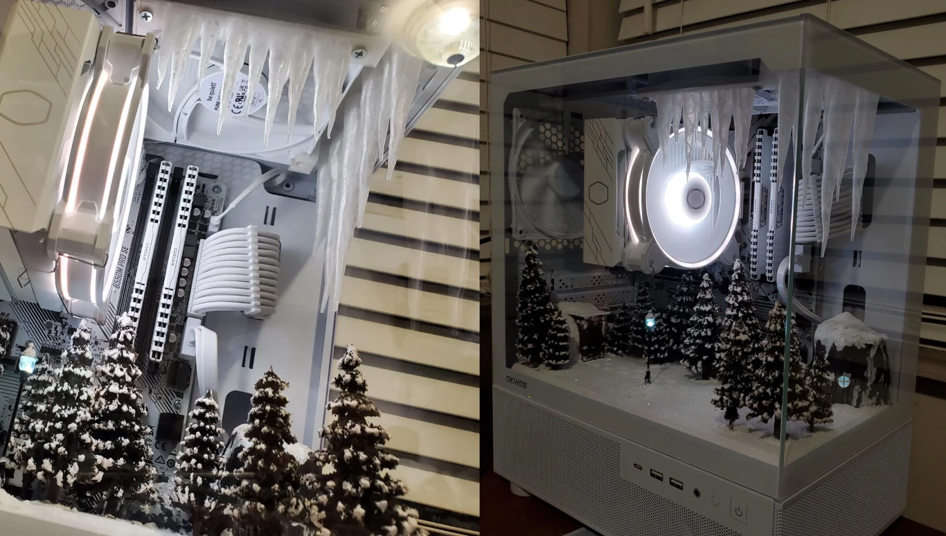 Trzeba przyznać, że projekt robi ogromne wrażenie i całą pewnością potrafi wprawić w odpowiedni zimowy nastrój. Z kolei w leci samo popatrzenie na tak skonstruowanego peceta może przynieść trochę dawki chłodu i odświeżenia. Zestaw nie posiada wbudowanej dedykowanej karty graficznej. "To nie jest sprzęt do gier, to po prostu komputer ogólnego użytku dla mojej mamy, aby mogła korzystać z Internetu i wykonywać typowe biurowe czynności komputerowe" - wyjaśnia autor.