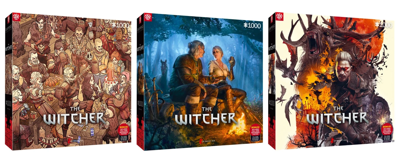 Premierowe wzory puzzli z serii Comic Book Puzzle inspirowanych komiksowymi historiami z uniwersów Wiedźmina oraz Cyberpunka 2077.