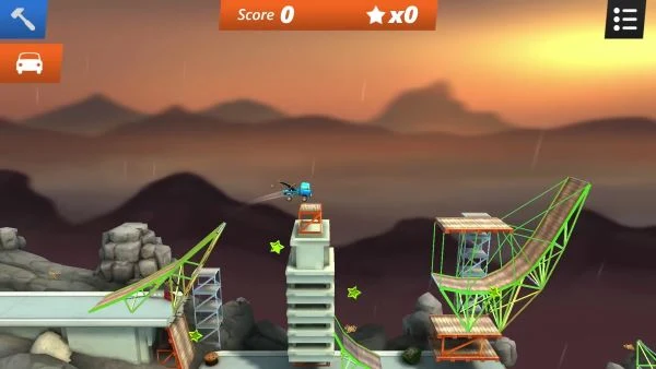A to dlatego, że nie chodzi w niej tylko o zbudowanie prostego mostu, po którym przemieścić się będzie mogła wybrana maszyna. Na każdym z poziomów umieszczono różnego rodzaju znajdźki i gwiazdki, które pojazd musi zebrać w czasie przejazdu. A że często znajdują się one w trudno dostępnych miejscach, na trasie trzeba ustawić różnego rodzaju skocznie i rampy.