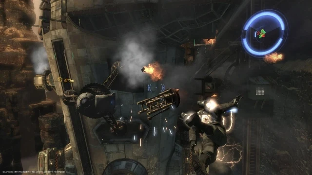 Lawirując w powietrzu lewą gałką kierujemy naszym protagonistą, prawą zaś możemy zmieniać widok kamery o 360 stopni, a także wykonywać ewolucje, które może i są efektowne, ale wprowadzają jeszcze większy chaos w pracy kamery. Dobre operowanie widokiem w trakcie lotu to w Dark Void nie lada wyzwanie. Gdyby jeszcze były to loty turystyczne dałoby się to jakoś przełknąć. Tyle, że szybując w niebiosach nie jesteśmy sami, a natrętów trzeba się jakoś pozbyć.