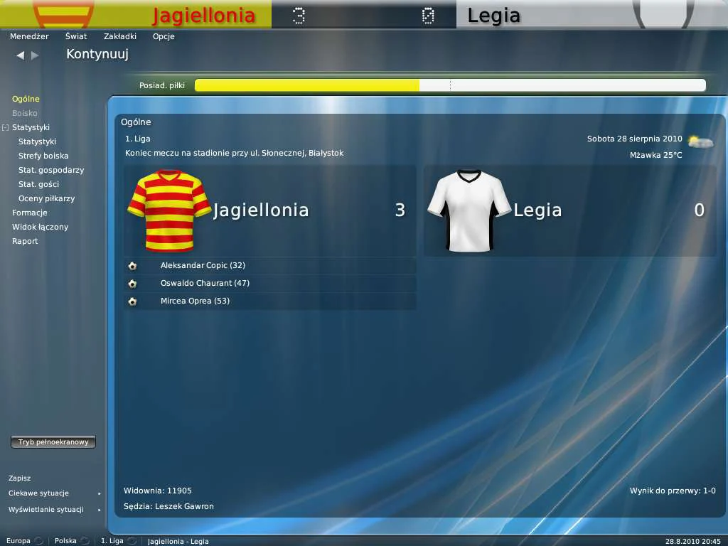W samej rozgrywce też zostało namieszane sporo. Specjalnie użyłem słowa "namieszane", gdyż do dziś trwają spory, czy poprawki wprowadzone rozgrywania meczu poprawiają jego realizm, czy psuja tę grę. Gra naszych piłkarzy stała się bardziej chaotyczna, dużo więcej niecelnych podań, multum niecelnych strzałów, interwencje bramkarzy a'la Kuszczak. Tak, tak... kilkukrotnie zdarzyło mi się, że mój bramkarz strzelił gola przez całą długość boiska. Radość z tego ogromna, ale ile wspólnego ma z realizmem? Reasumując, gra naszych piłkarzyków nieco bardziej irytuje (nieporadność!), ale podobno piłka jest grą błędów.