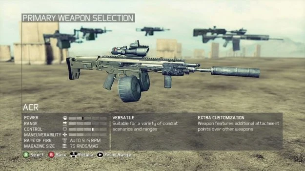 Jako że akcja Ghost Recon: Future Soldier rozgrywa się w niedalekiej przyszłości, podczas zabawy przychodzi nam skorzystać z nieco futurystycznego wyposażenia. Choć wśród rodzajów broni (w sumie 52) natykamy się głównie na takie, które już gdzieś widzieliśmy, to już na przykład drony bojowe, wyposażone w moździerz oraz wyrzutnię rakiet, potrafią zrobić wrażenie. Jedną z ciekawszych opcji zaserwowanych przez twórców jest Gunsmith. Za jej sprawą możemy rozłożyć na czynniki pierwsze każdą broń dostępną w grze, a następnie zmodyfikować ją, dostosowując do własnych potrzeb. Można zmieniać kolby, celowniki, lufy... dosłownie wszystko. Wymarzona zabawa dla miłośników militariów. Ci, których takie niuanse nie interesują, mogą natomiast pozostać przy optymalnych ustawieniach.