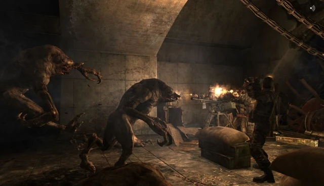 Po pierwsze to, o czym wspominałem na samym początku, czyli druga połowa gry. Ucieszy ona zapewne każdego, kto polubił buszowanie w laboratoriach X w pierwszym Stalkerze i świat psychodelicznych wizji rodem z F.E.A.R.. Jednak fabuła została skonstruowana w taki sposób, że mniej więcej od połowy Metro 2033 twórcy odcinają nas niemalże zupełnie od największych atutów gry. Opuszczamy "cywilizowane" okolice, skradanie się nie ma już sensu, a zbierane przy każdej okazji przedwojenne kulki możemy co najwyżej wsadzić w zadnią część bibliotekarza. Mutanta takiego znaczy. Na początku nie jest tak źle, jednak od pewnego momentu idziemy do przodu, kosząc długimi seriami dziesiątki mutantów i nie robiąc nic poza tym. Przyznam szczerze, że po pierwszych kilku godzinach zabawy miałem nadzieję na coś więcej. Zamiast rozwijać najlepsze patenty, twórcy gry się od nich po prostu odwrócili.