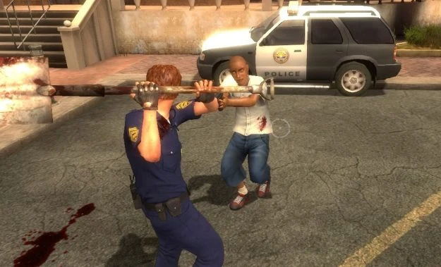 Grzech czwarty - beznadziejne strzelaniny i bijatyki. Panowie z Running With Scissors wzorowali się nie tylko na Call of Duty, ale też na Gears of War. Zmienili perspektywę, z jakiej obserwujemy akcję, na trzecioosobową i pozwolili bohaterowi chować się za zasłonami, a nawet brać zakładników. Szkoda tylko, że paleta emocji, z jaką spotykamy się w kolejnych strzelaninach, jest uboga jak polski emeryt po wizycie w aptece. Nie ma w nich NICZEGO ekscytującego. A o bijatykach lepiej w ogóle nie mówić, bo to już dno absolutne. Wyobrażacie sobie, że autorom nie chciało się nawet zanimować reakcji ciał przeciwników na wyprowadzane przez nas ciosy?