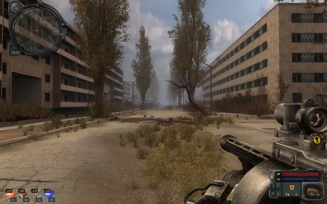 Niewykluczone, że wpływ na to miała również nowa i bardziej "kompaktowa" konstrukcja świata gry. Mamy tu bowiem jedynie trzy, choć duże i ciekawie zaprojektowane lokacje, przy czym do kolejnych droga otwiera się po zrealizowaniu odpowiedniego etapu fabuły. Oczywiście możemy później między nimi swobodnie podróżować, choć oznacza to za każdym niemalże razem poniesienie kosztów wynajęcia przewodnika. Nie powinno być to żadnym problemem, gdyż na brak kasy nie można narzekać; pod tym względem Zew Prypeci rozpieszcza nas, jak żaden z poprzedników. Pieniądze zarabia się dość szybko i w ilościach pozwalających na bezstresowe ulepszanie każdej kolejnej posiadanej giwery. Prawdopodobnie dlatego wprowadzono opcję "wybredny kupiec" - nikt nie kupi od nas gnata o sprawności poniżej 80% i choć później łatwo daje się to obejść, jest to już etap gry, na którym pieniądze przestają odgrywać praktycznie jakąkolwiek rolę.
