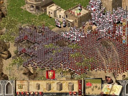 Fani gier strategicznych wiedzą doskonale, iż wprowadzenie tak wielkiej liczby wojaków na pole bitwy może doprowadzić do całkowitego chaosu i skończyć się bezsensowną jatką. Dlatego przy walkach o pewnej skali konieczne są mechanizmy zarządzania siłami zbrojnymi. Różnie się to rozwiązuje. Bywa, że dostajemy opcję tworzenia wielkich zgrupowań taktycznych, w których jednostki ustawiają się w ramach wybranego szyku. Innym rozwiązaniem jest operowanie całymi, kilkudziesięcioosobowymi oddziałami, zamiast pojedynczymi figurkami. Może być też tak, że część armii da się delegować oficerowi, czyli SI działającej zgodnie z naszymi rozkazami. Jak rozwiązano to w przypadku Twierdzy: Krzyżowca Eztreme? Cóż... nijak. Cała ta masa woja dalej działa według starych zasad, przewidzianych dla kieszonkowych grup uderzeniowych. Do tego sprite'y jednostek (nie posiadają przecież parametru trzeciego wymiaru) zlewają się ze sobą podczas marszu, tworząc gęstą ciżbę rozciągniętą w węża. Ostatnie miejsce, gdzie możemy podziwiać wojska wroga w szyku, to otoczenie budynku je generującego. A i to nie zawsze.