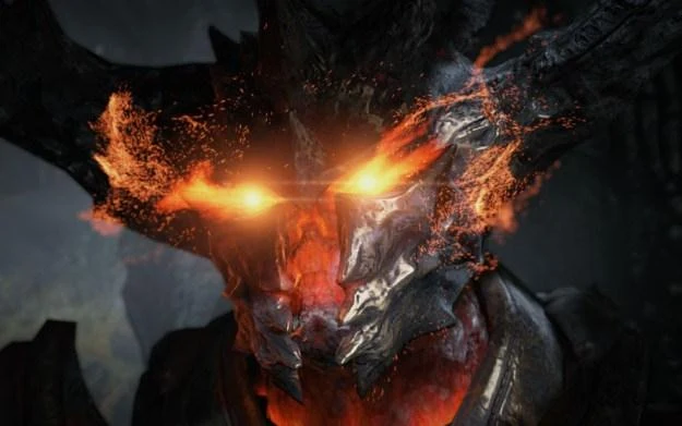 Po chwili wstał, a wokół niego zaczęła płynąć lawa, zaś płomienie pochłonęły cały widoczny świat. W powietrze wzbijały się słupy dymu i żar ognia. Rycerz stał, a od jego zbroi odbijały się iskry, które zawirowały w powietrzu i zniknęły w popiele.