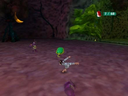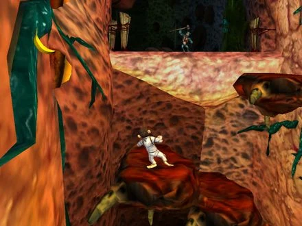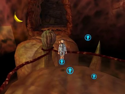 Przed naszym straszliwym tandemem stoi jedenaście misji - każda, jak już pisaliśmy, polega na przebiegnięciu, przeskoczeniu, pobiciu lub przeleceniu z miejsca na miejsce na grzbiecie latającego stworka itp. Do naszych zadań zaliczać się będzie również dewastowanie miejscowych dzieł sztuki w postaci posągów lokalnego władcy. Najwyraźniej twórcy gry postanowili ćwiczyć dzieci w barbarzyństwie stosowanym. To się kiedyś może odbić czkawką! Dla dorosłego Gracza vel Graczki powyższe zadania nie są zapewne zbyt zachęcającą perspektywą. I słusznie, gdyż Małpy w kosmosie adresowane są stanowczo do dzieci. O ile film może się podobać również rodzicom, o tyle gra - nie. Dzieciak ma mnóstwo zabawy, a dorosły albo przyśnie, albo da sobie spokój, próbując po raz enty przeskoczyć z liany na lianę. Ostatecznie, co my małpy jesteśmy, czy co? Niech się te młode okazy podszkolą na tym same!