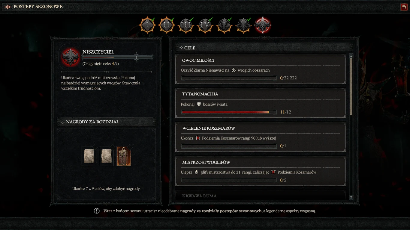 Przed premierą Sezonu Krwi Blizzard głośno zapowiadał, że deweloperzy pracują aktualnie nad końcową fazą gry. Rewolucją na tym etapie miały być nowe bossy. Każdy z nich ma zwiększoną szansę na nagrodzenie nas konkretnym unikalnym przedmiotem, co szybko stało się motywacją, aby jak najszybciej dotrzeć do tego momentu. Poszczególne bossy wymagają również przedmiotów zdobywanych podczas konkretnych aktywności, co miało zachęcić nas do sprawdzenia czegoś poza Nightmare Dungeonami.