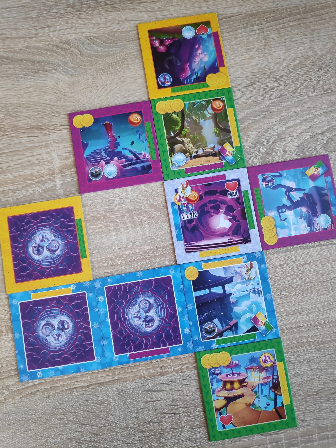 Mechanika gry jest prosta i po kilku powtórzonych sekwencjach nie powinna już był dla nikogo problemem. Każdy z graczy w swojej turze musi wykonać kilka postępujących po sobie akcji - wyłożyć i odpowiednio (kolorem) dopasować kafelek terenu, przejść na kafelek z krainą, dobrać kartę wyzwań, wystawić kartę przeciwnika i stoczyć z nim bój, a na samym końcu zebrać należne nagrody.