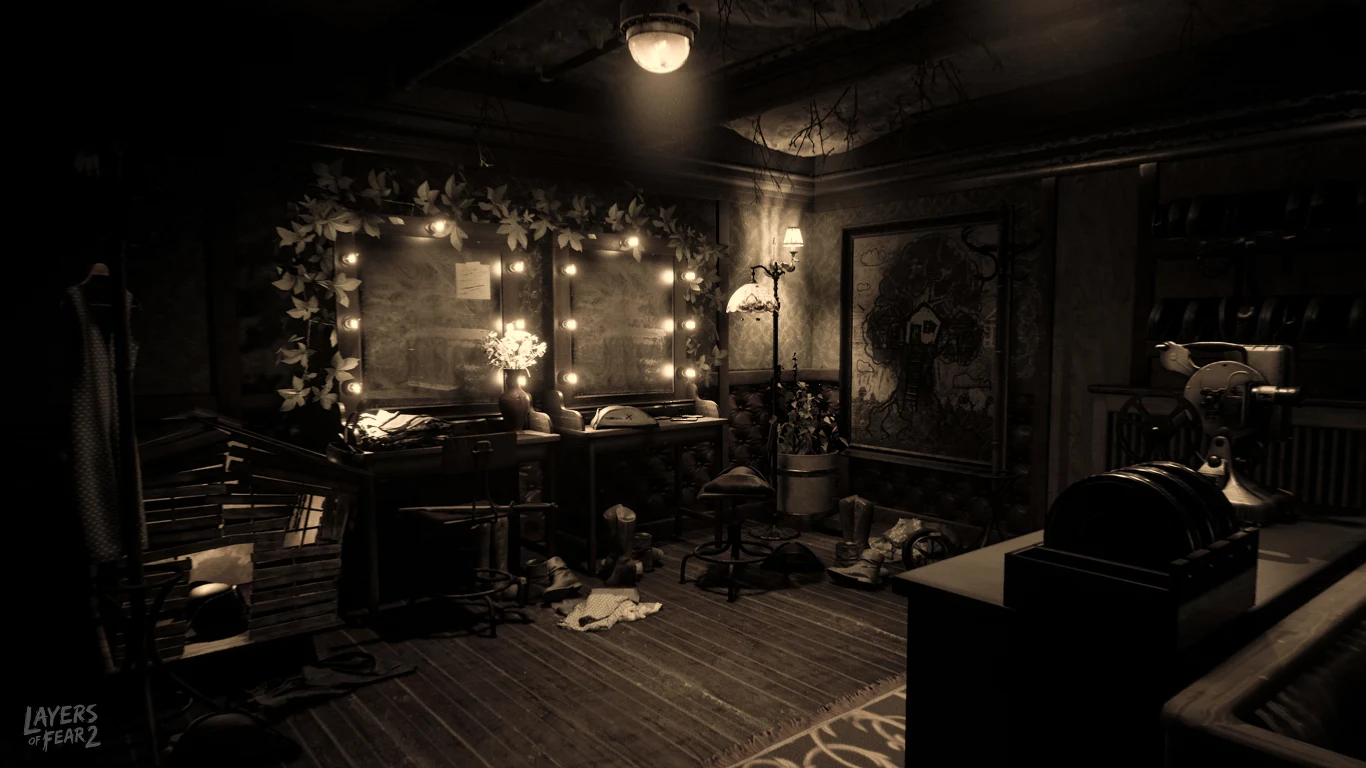 Przez większość czasu będziecie się zastanawiać, o co w ogóle w Layers of Fear 2 chodzi. Czy wydarzenia, których jesteśmy świadkami, dzieją się teraz, a może to wspomnienia lub wyobrażenia? Czy naszemu bohaterowi udało się już odegrać swoją rolę, a może dopiero przyjdzie mu to zrobić? Kim, tak w ogóle, jest ów bohater? A kim reżyser, który zaangażował go do swojej nowej produkcji? Pytań pojawiają się dziesiątki i tylko na niektóre z nich udaje się znaleźć odpowiedzi. Niektóre kwestie zostają nam wyjaśnione za pośrednictwem krótkich dialogów i monologów (tajemniczych, a jakże), jak również najrozmaitszych wycinków z gazet czy notatek. Jeśli nie znajdziemy ich wszystkich za pierwszym razem, po ukończeniu gry będziemy mogli wrócić do dowolnego aktu i rozejrzeć się za tym, co pominęliśmy.