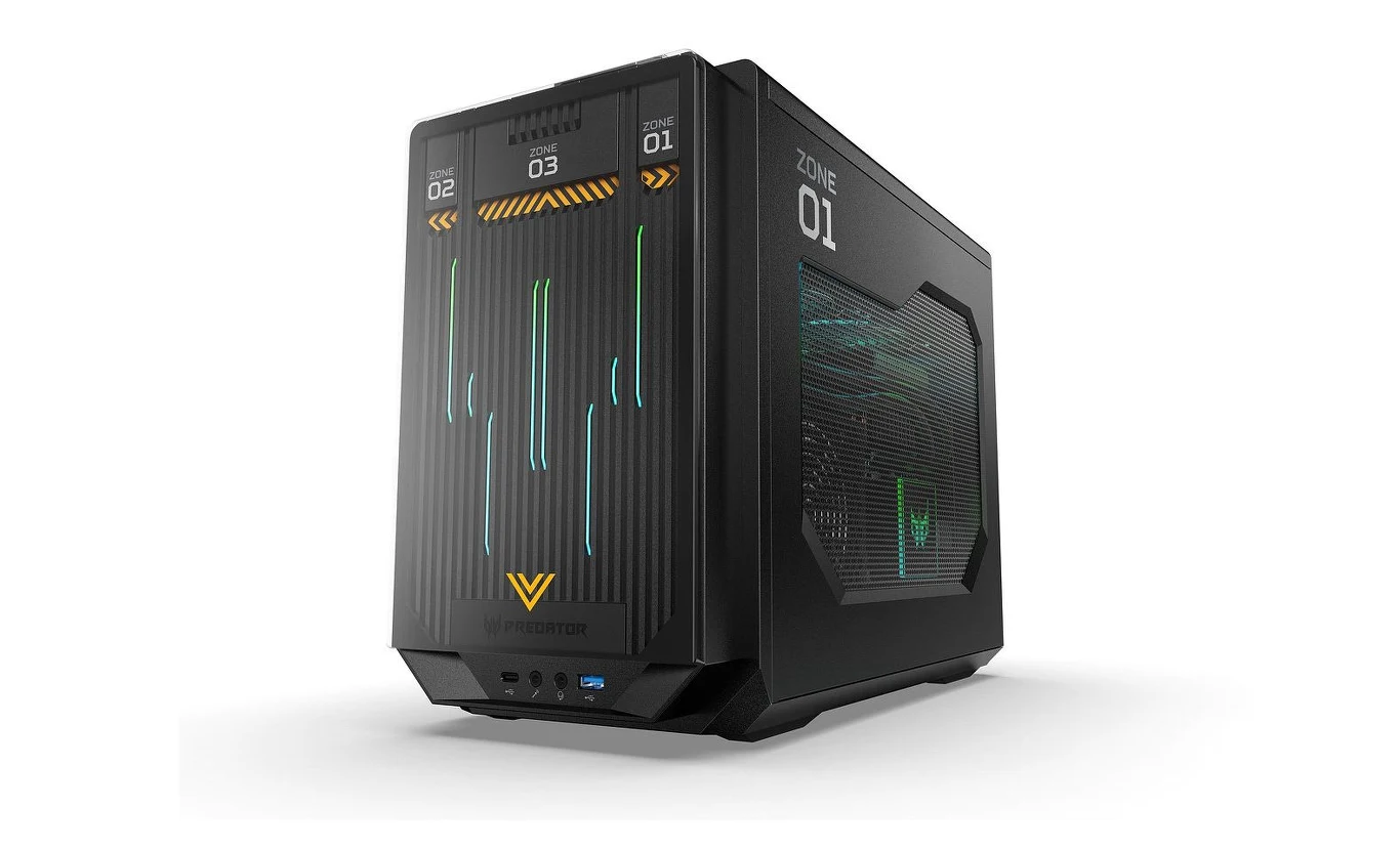 Jeśli chodzi o pamięć, gracze i twórcy treści multimedialnych nie mają powodów do obaw, ponieważ Predator Orion X oferuje im na wejściu maksymalnie 32 GB DDR5-5600, dwa dyski SSD M.2 2400 (każdy o pojemności do 1 TB) oraz podświetlaną kieszeń na dyski SSD NVMe M.2 (wymienialną w trybie "hot swap"), dzięki której można dodatkowo zwiększyć pojemność dyskową. Komputer korzysta z technologii Intel Killer E3100G i Intel Killer Wi-Fi 6E AX211, co gwarantuje stabilne połączenie z siecią. Użytkownik dostaje również do dyspozycji całą masę złącz, w tym dwa USB3.2 1. generacji (jedno typu C i jedno typu A), mikrofon i gniazdo combo z przodu, 2 porty USB 3.2 typu C (2. generacji), 3 porty USB 3.2 typu A (2. generacji), 2 porty USB 2.0 oraz gniazdo RJ45 umieszczone z tyłu obudowy.