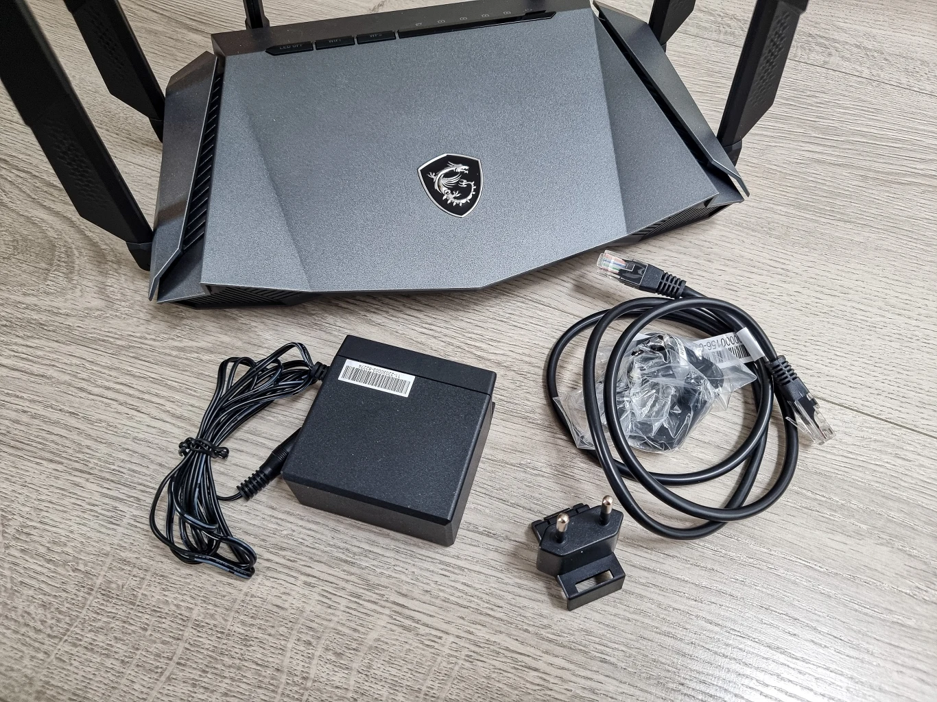 MSI zrobiło wszystko, aby router był bezpieczny w swoim opakowaniu, a odbiorca poczuł się wyróżniony tym, że kupił właśnie to urządzenie. Urządzenie zapakowano w duże, eleganckie pudełko, w którym znajdujemy zasilacz, końcówki do gniazdek elektrycznych (typ C i typ G), kabel LAN oraz instrukcję szybkiego uruchomienia w kilku językach, w tym polskim. Całość jest solidnie zapakowana i zabezpieczona. Możecie być spokojni o to, czy urządzenie dotrze do ciebie w całości.