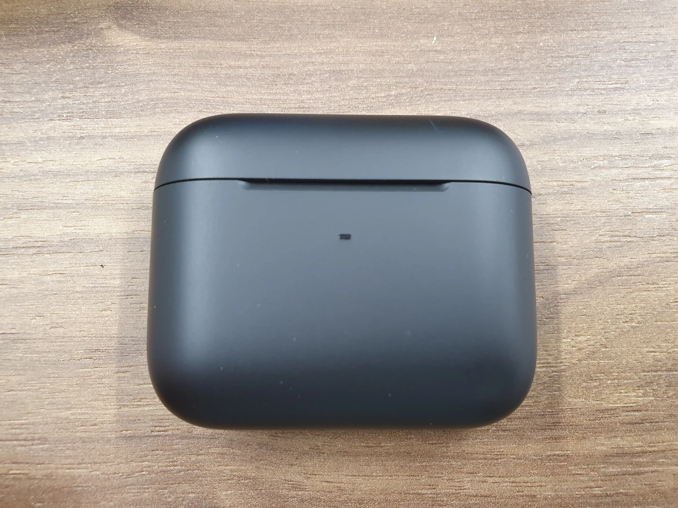 Pod wiekiem, w środku znajduje się wyprofilowane miejsce na słuchawki, z przodu umiejscowiono diodę wskazującą poziom naładowania. W dolnej części zlokalizowano port USB-C.