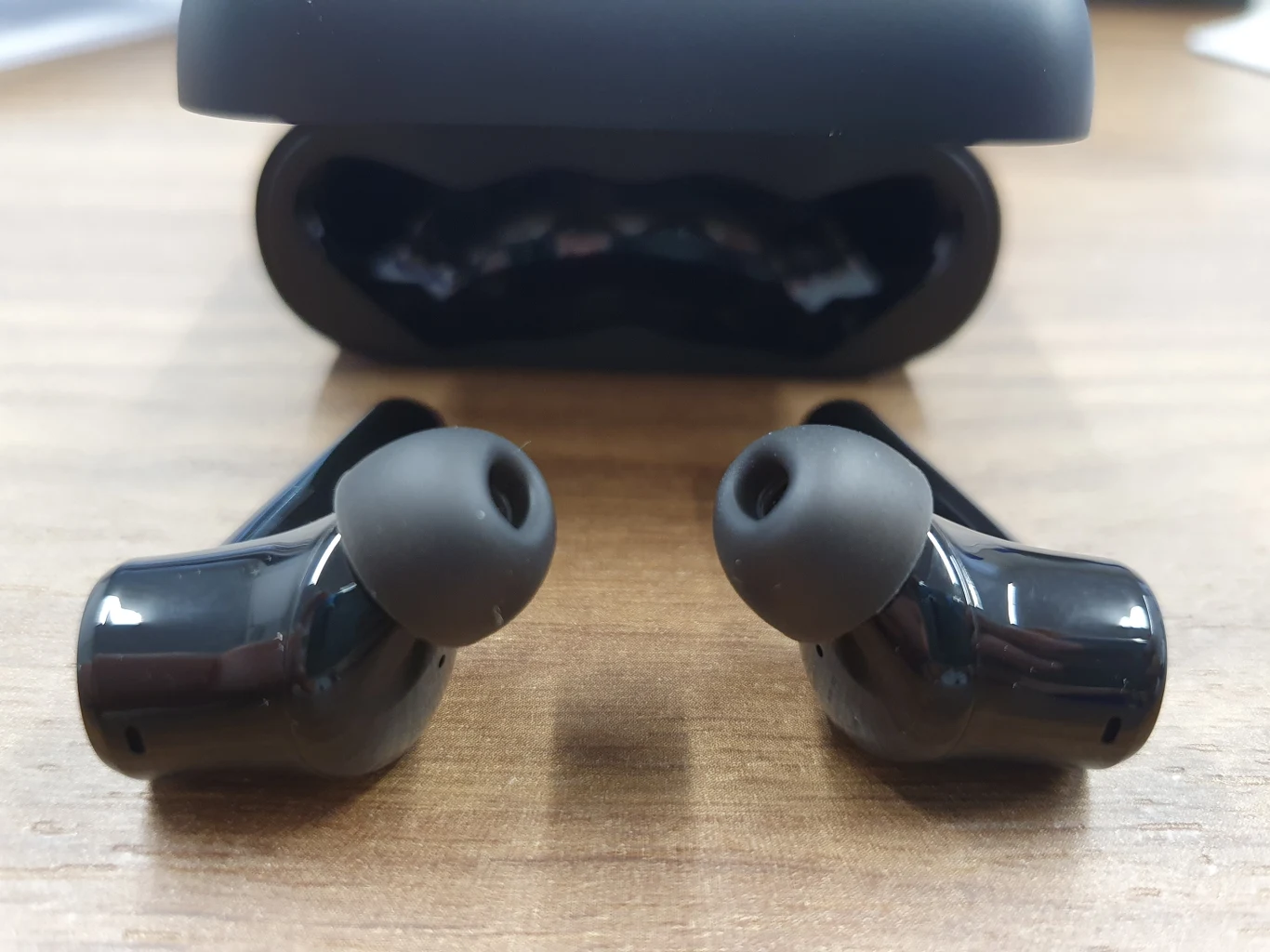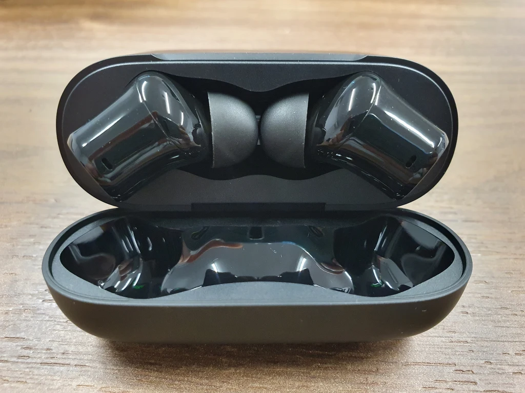 Świetnie układają się w uszach, nie powodują dyskomfortu nawet podczas dłuższego użytkowania. Przy wadze 53 g są ledwo wyczuwalne podczas noszenia. Zdecydowanie lepiej niż w przypadku poprzednika, którego, ze względu na budowę (półuszne jak zwykłe AirPodsy) nie dało się w pełni umiejscowić bezpośrednio w kanale słuchowym.