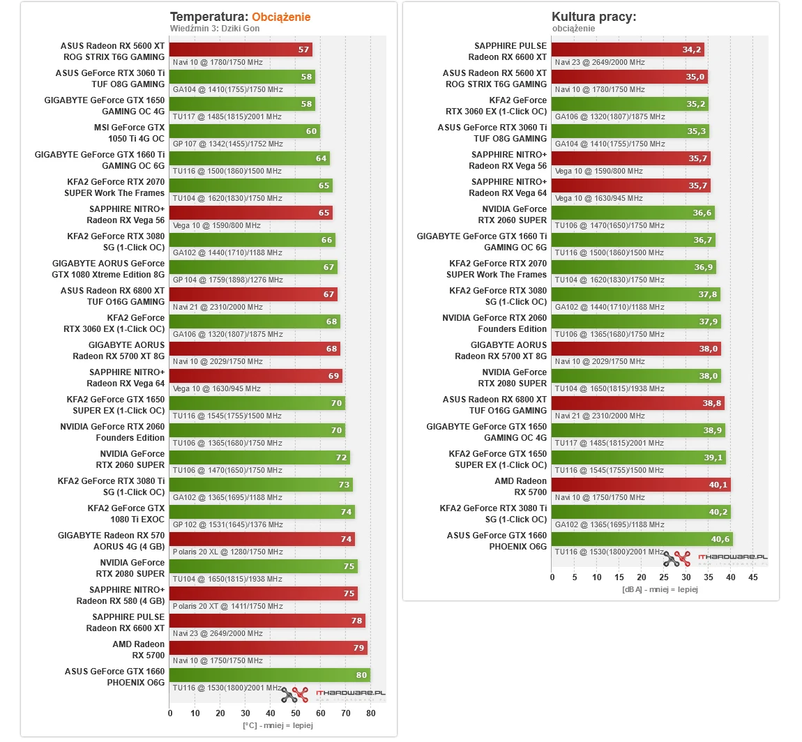 Odczyty temperatury w trakcie testów KFA2 GeForce RTX 3090 Ti EX Gamer (1-Click OC) były przeprowadzane przy wykorzystaniu niezmienionej platformy testowej. Obudowa była zamknięta i postawiona obok biurka, czyli zakładamy bardziej realistyczny scenariusz wykorzystania sprzętu. Temperatura w pomieszczeniu wahała się w zakresie 23-24 stopni Celsjusza, a do przeprowadzenia pomiarów posłużyła aplikacja MSI Afterburner w wersji 4.6.4. Testy przeprowadzone zostały w grze Wiedźmin 3: Dziki Gon, a widniejące na wykresie wartości są najwyższymi spośród zarejestrowanych podczas testu.